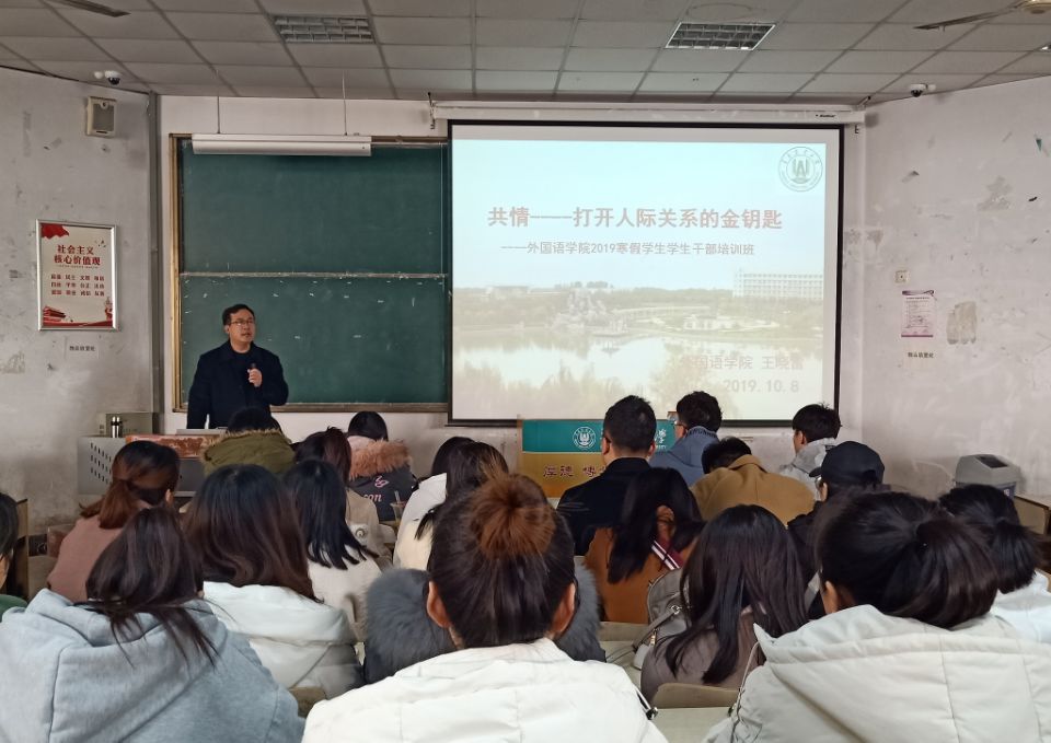 2月24日,青岛农业大学外国语学院在教学楼D203举行2019年寒假学生干部培训。院党委副书记王晓雷、团委书记嵇安奕,辅导员刘艳出席,学生党员和全体学生干部参加培训,会议由嵇安奕主持。