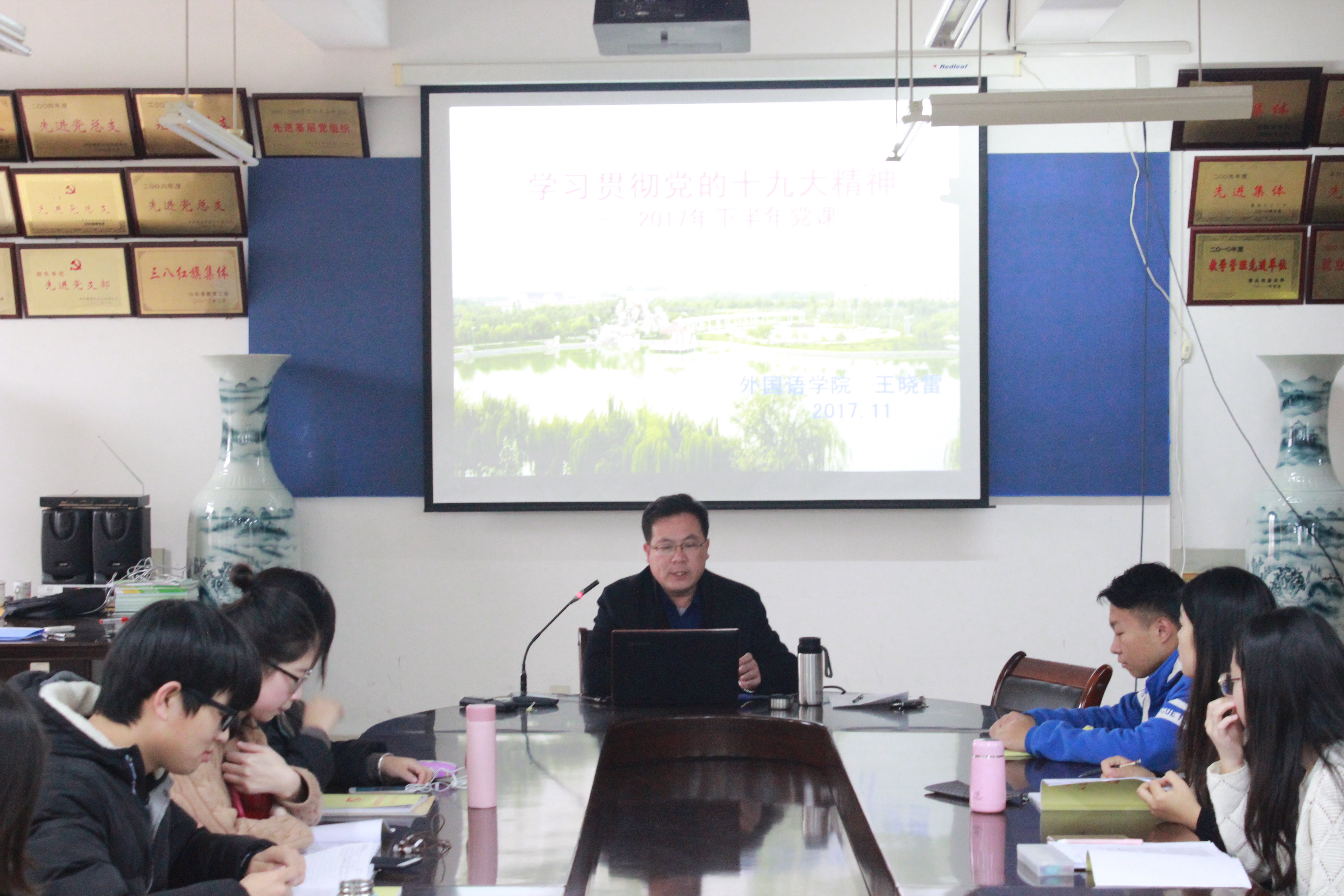 党课对十九大关于修改党章的决议进行了详细的解读。王晓雷从新成就、新时代、新矛盾、新使命、新思想、新方略、新征程、新举措、新要求九个方面全面系统论述了十九大会议精神。十九大报告提出,中国特色社会主义进入新时代,意味着中国迎来了实现中华民族伟大复兴的光明前景;意味着二十一世纪的中国在世界上高高举起了中国特色社会主义伟大旗帜;意味着中国特色社会主义道路、理论、制度、文化不断发展,拓展了发展中国家走向现代化的途径。王晓雷还提到,在以习近平同志为核心的党中央的正确领导下,中国在政治、经济、文化、军事等方面取得了重大成就,我国社会主要矛盾也已经转化为人民日益增长的美好生活需要和不平衡不充分的发展之间的矛盾,而在此矛盾下建设中国特色社会主义之路仍任重道远。