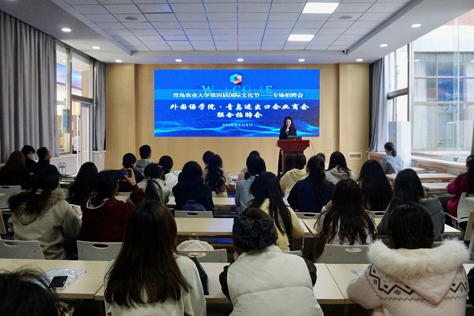 4月2日,外国语学院与青岛进出口企业商会在文经楼A102联合举办专场招聘会,多家驻青外贸企业参会。学院党政领导班子、系部主任及班主任带领毕业生到场参加,为外语类专业学生提供了精准的就业与实习机会。