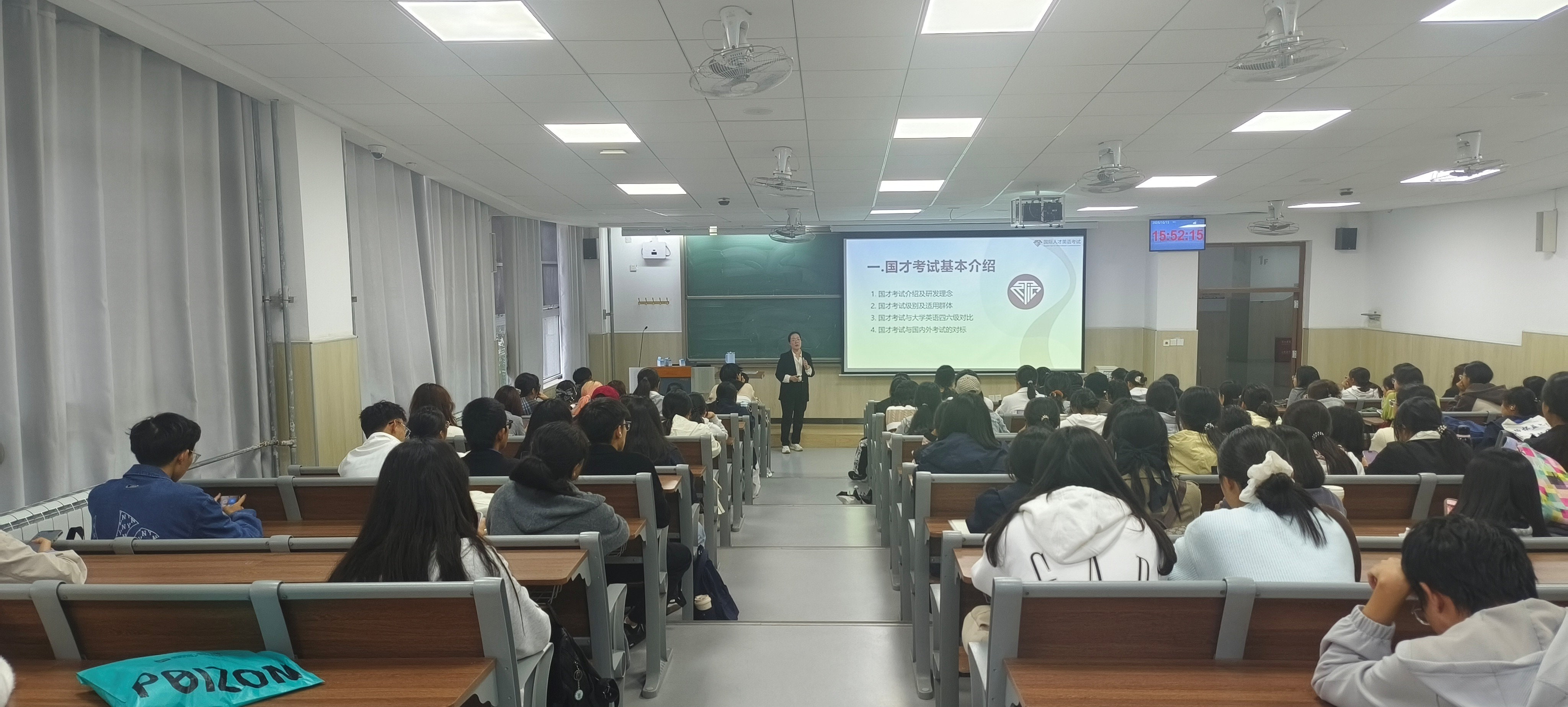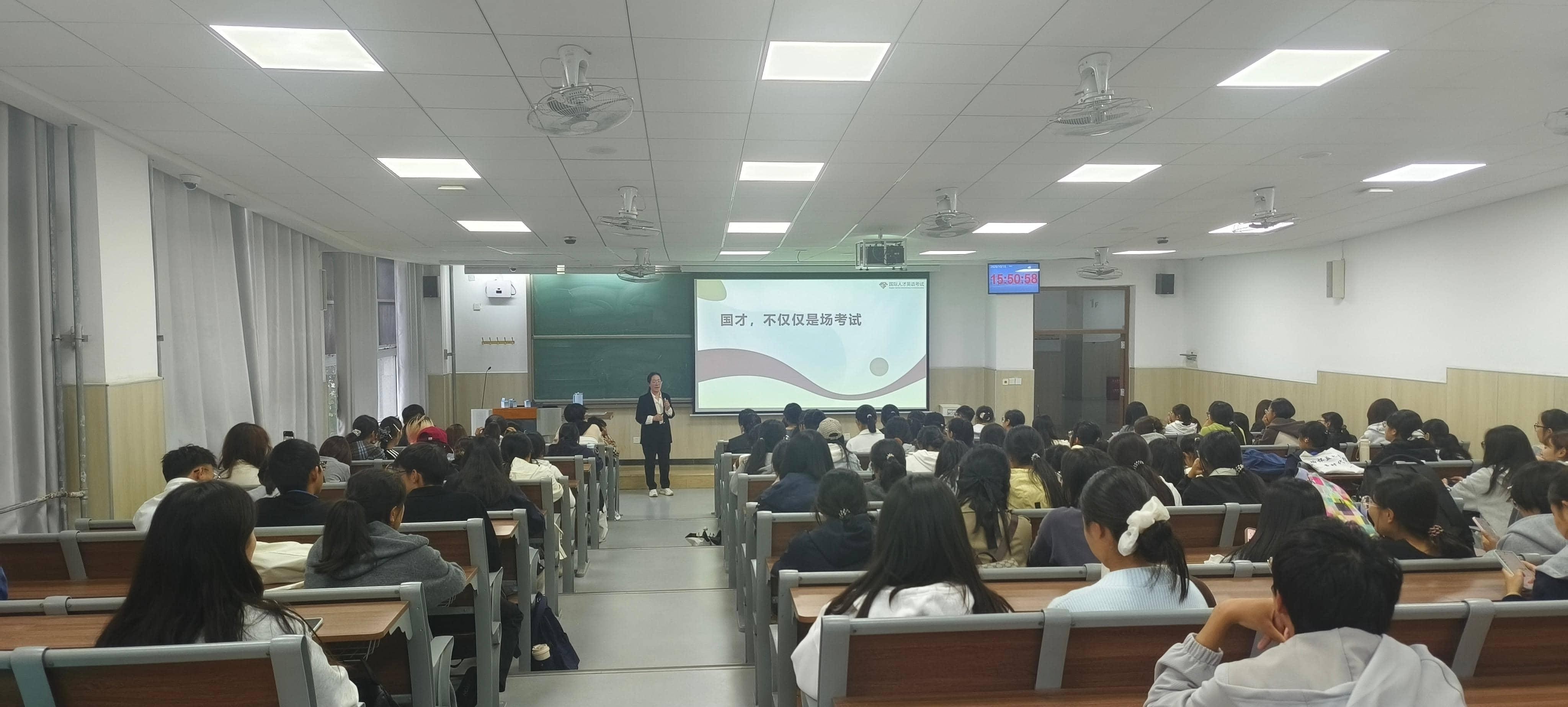 为帮助2025级新生全面了解国际人才英语考试(国才考试),2025年10月15日,外国语学院大学英语第二教学部在平度校区博学楼A101举办专题讲座,吸引了上百名同学参加。讲座由大学英语第二教学部副主任邹秋娟担任主讲。