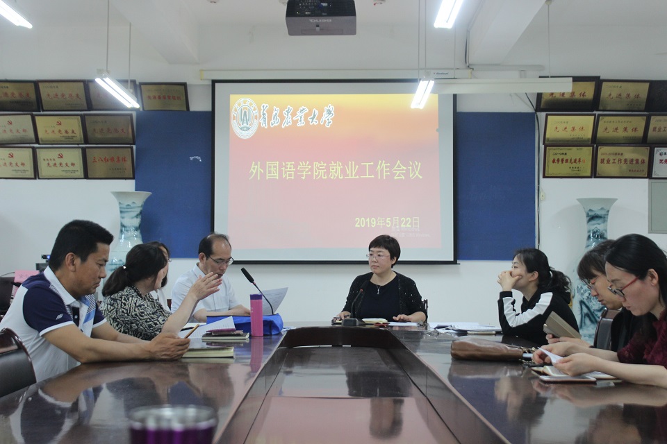 5月22日,青岛农业大学外国语学院在文经楼会议室召开就业工作会议。学院党政领导出席,辅导员和毕业班班主任参会,会议由副院长纪卫宁主持。